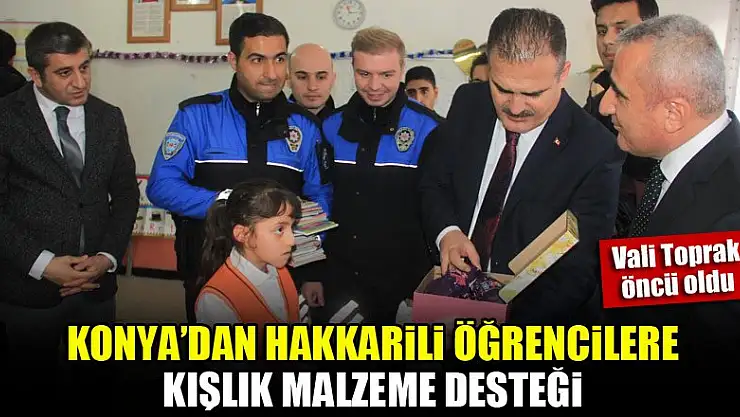 Hakkari İl Emniyet Müdürlüğü desteği ile Konya Valisi Cüneyit Orhan Toprak tarafından öğrenciler için gönderilen kışlık bot ve kırtasiye malzemesi, TOBB Ortaokulunda eğitim gören öğrencilere dağıtıldı. TOBB Ortaokulundaki malzeme dağıtım törenine Hakkari Valisi İdris Akbıyık, Emniyet Müdürü S. Suvat Dilberoğlu, Milli Eğitim Müdürü Bilal Gür ve Toplum Destekli Polislik Şube Müdürlüğü Büro Amiri Komiser Halil İbrahim Avşar katıldı. Vali Akbıyık ve beraberindekiler kendi elleriyle öğrencilere bot ve değişik malzemeler dağıttılar.