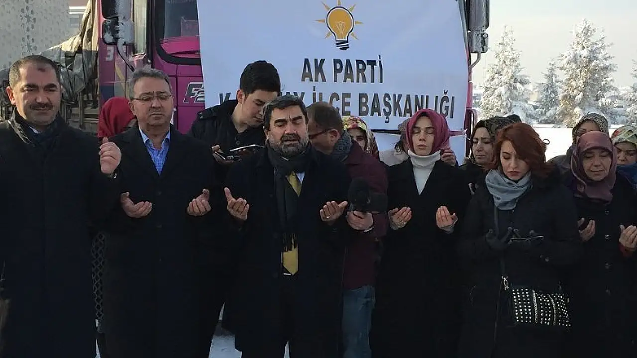 Konya'da, AK Parti Karatay İlçe Başkanlığı öncülüğünde Halepliler için toplanan insani yardım malzemelerini taşıyan 2 tır, dualarla uğurlandı.