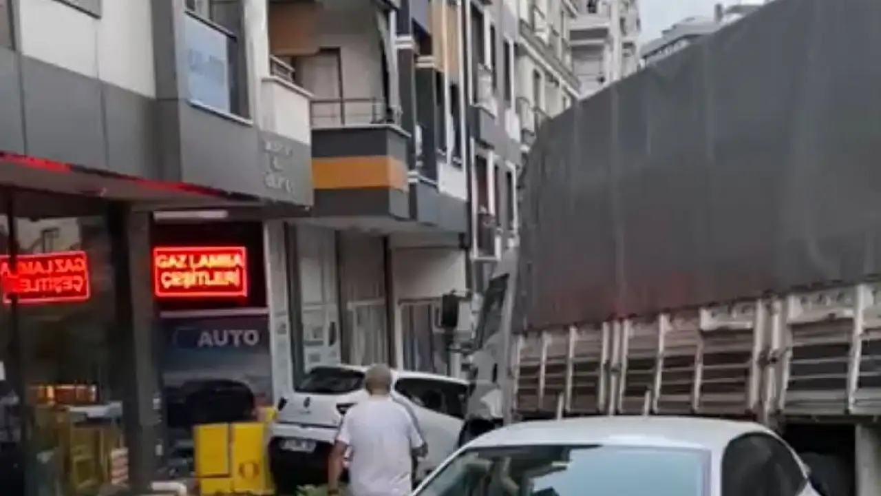 ÜMRANİYE'de şoförünün park edip, el frenini çekmeyi unuttuğu iddia edilen un yüklü kamyon, bir anda hareketlenerek, park halindeki dört araca çarptıktan sonra binanın doğal gaz kutusuna çarparak durabildi.