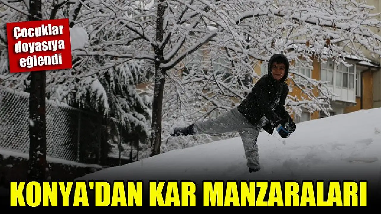 Konya'da etkili olan kar yağışının ardından şehir merkezi beyaza büründü. Çocuklar yağan karın tadını kartopu oynayarak çıkardı.