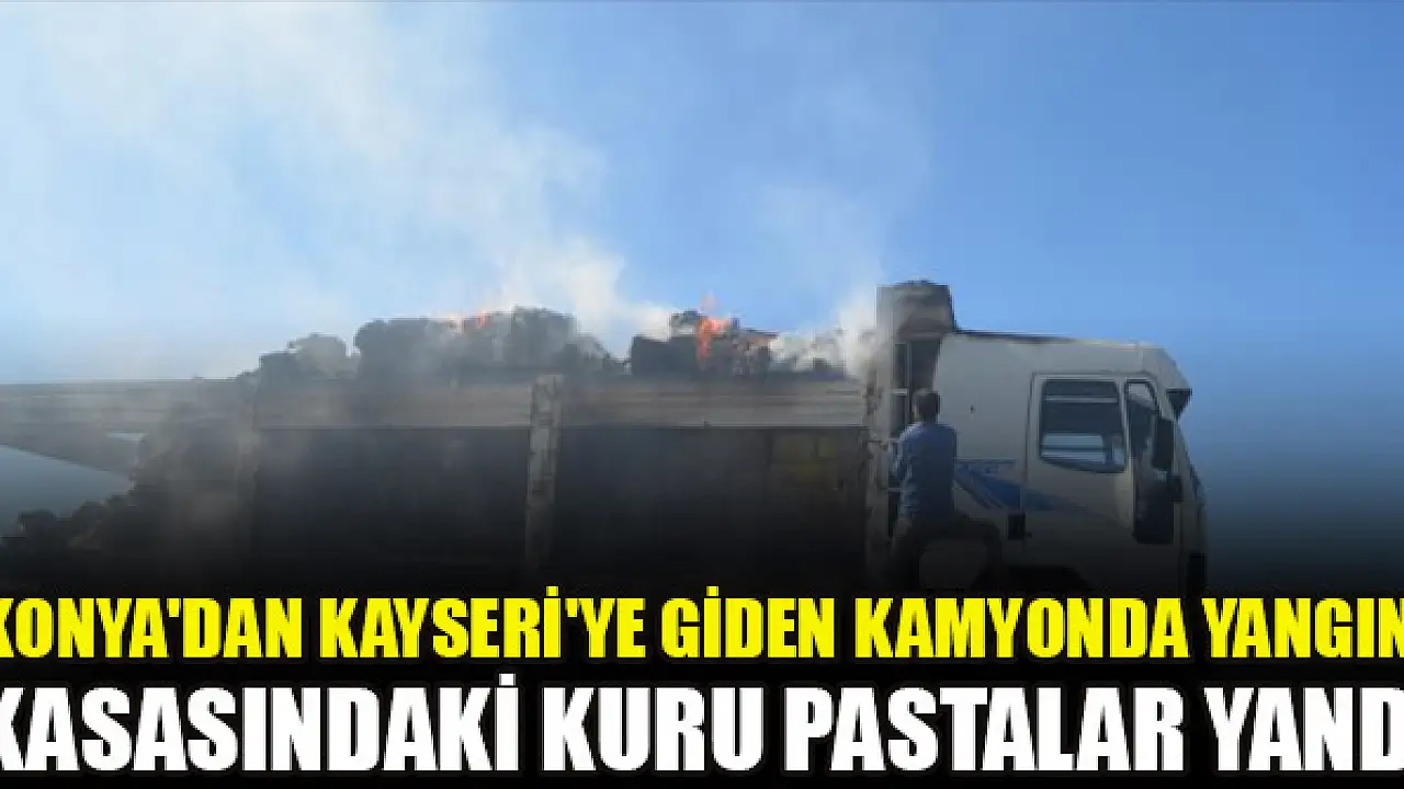 Konya'dan Kayseri'ye giden kuru pasta yüklü kamyonun kasasında yangıın çıktı.
