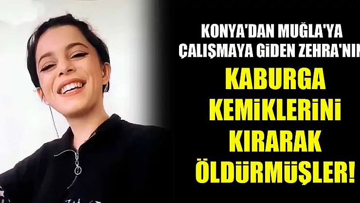 - Konya'dan Muğla'ya çalışmaya giden Zehra'nın kaburga kemiklerini kırarak öldürmüşler!