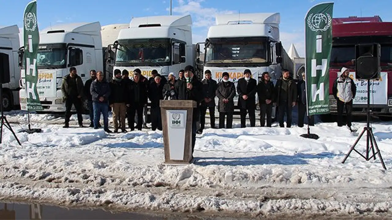 Konya İnsan Hak ve Hürriyetleri (İHH) İnsani Yardım Derneği, "Kış Kapıda Yalnız Bırakma" kampanyası kapsamında yakacak, gıda ve giysi yüklü 11 tırı, Suriye'ye uğurladı. Dernek Başkanı Hasan Hüseyin Uysal, Mevlana Kültür Merkezi önünde düzenlenen uğurlama töreninde, yardımların Suriye'deki ihtiyaç sahibi kişilerin sıkıntılarının bir nebze de olsa giderilmesi amacıyla gönderildiğini söyledi.