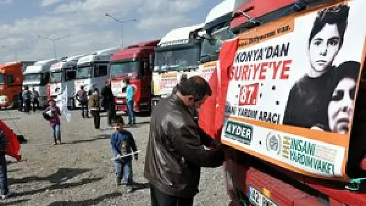 Konuşmaların ardından yardım tırları, dualar eşliğinde Suriye'ye doğru yola çıktı.