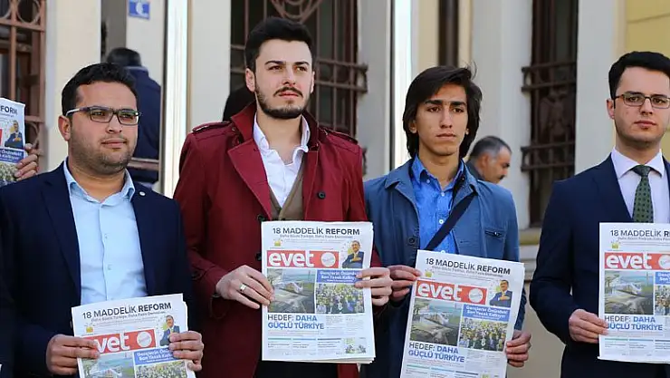 AK Parti Konya ve Afyonkarahisar Gençlik Kolları üyeleri, CHP Genel Başkanı Kemal Kılıçdaroğlu'na 'Evet' gazetesi ve kitapçığı gönderdi.