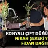 Konyalı çift düğünlerinde nikah şekeri yerine ağaç dağıttı