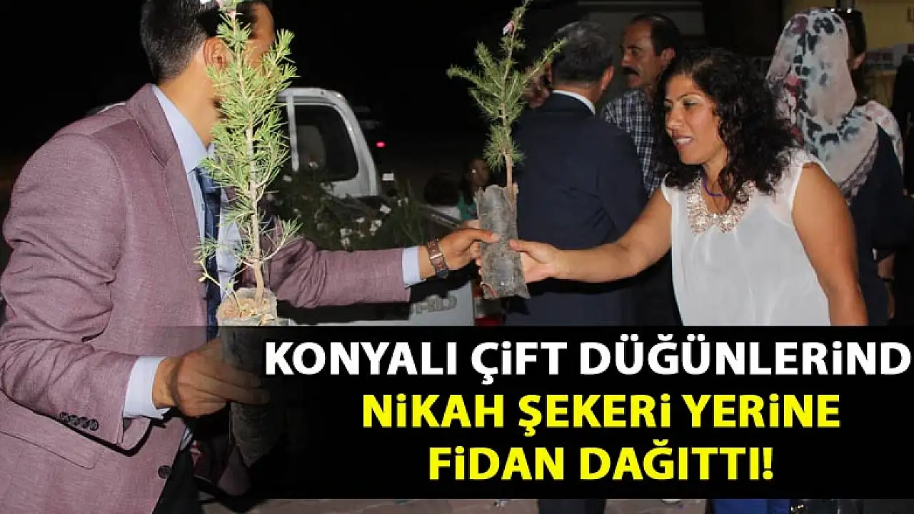 Konya'nın Karapınar ilçesinde dünyaevine giren çift, düğünlerine katılan davetlilere nikah şekeri yerine 500 çam fidanı dağıttı.
