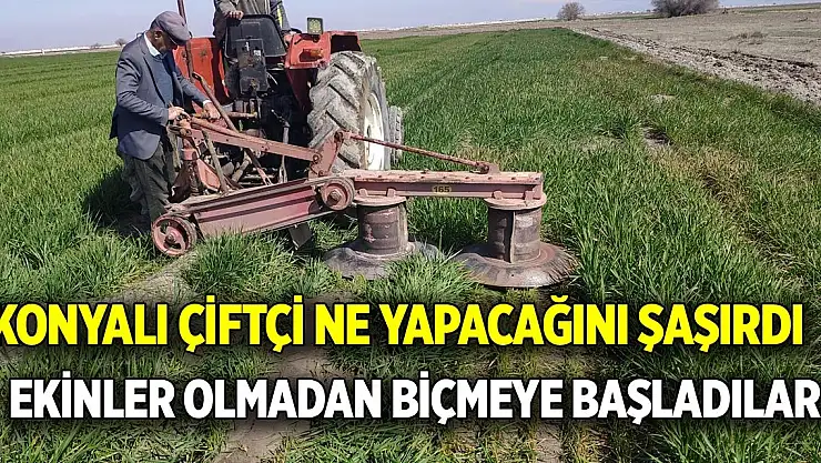 Konyalı çiftçi ne yapacağını şaşırdı Ekinler olmadan biçmeye başladılar