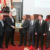 Konya İhracatçılar Birliği Kurucu Genel Başkanı Mustafa Toptaş Konya ve Konya sanayisi hakkında protokol üyelerine ve katılımcılara konuşma yaptı. Ardından Başkan Toptaş protokol üyelerine Konya’mızın simgesi çift başlı kartal çini hediye etti.