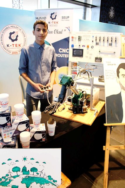 Kılıçarslan Borsa İstanbul Mesleki ve Teknik Anadolu Lisesi öğrencilerinin yaptığı; CNS Router makinesi, lazer kesim makinesi, elektrik bölümü öğrencilerinin ürettiği 7 ayrı eğitim seti olan elektrik paneli, akıllı ev sistemi, drone imalatı ve TÜBİTAK tarafından ödül alan endüstriyel robot kolu çalıştayda sergilendi.