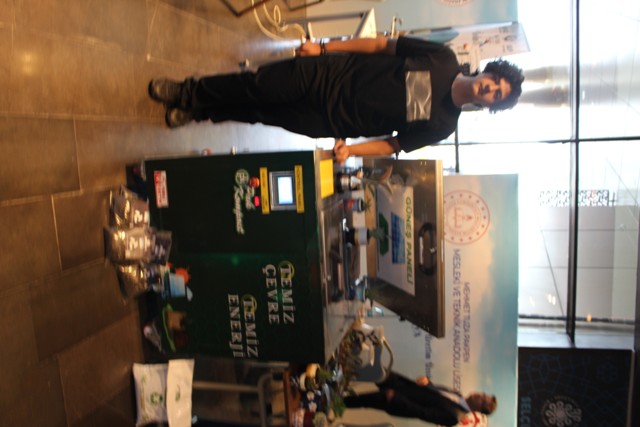 Öğrenciler, Mehmet Uçar, Mehmet Emre Sarı, Halil Kaya ve öğretmen Alper Kılıç stanttaki ürünleri ziyaretçilere tek tek anlatarak bilgi verdiler.