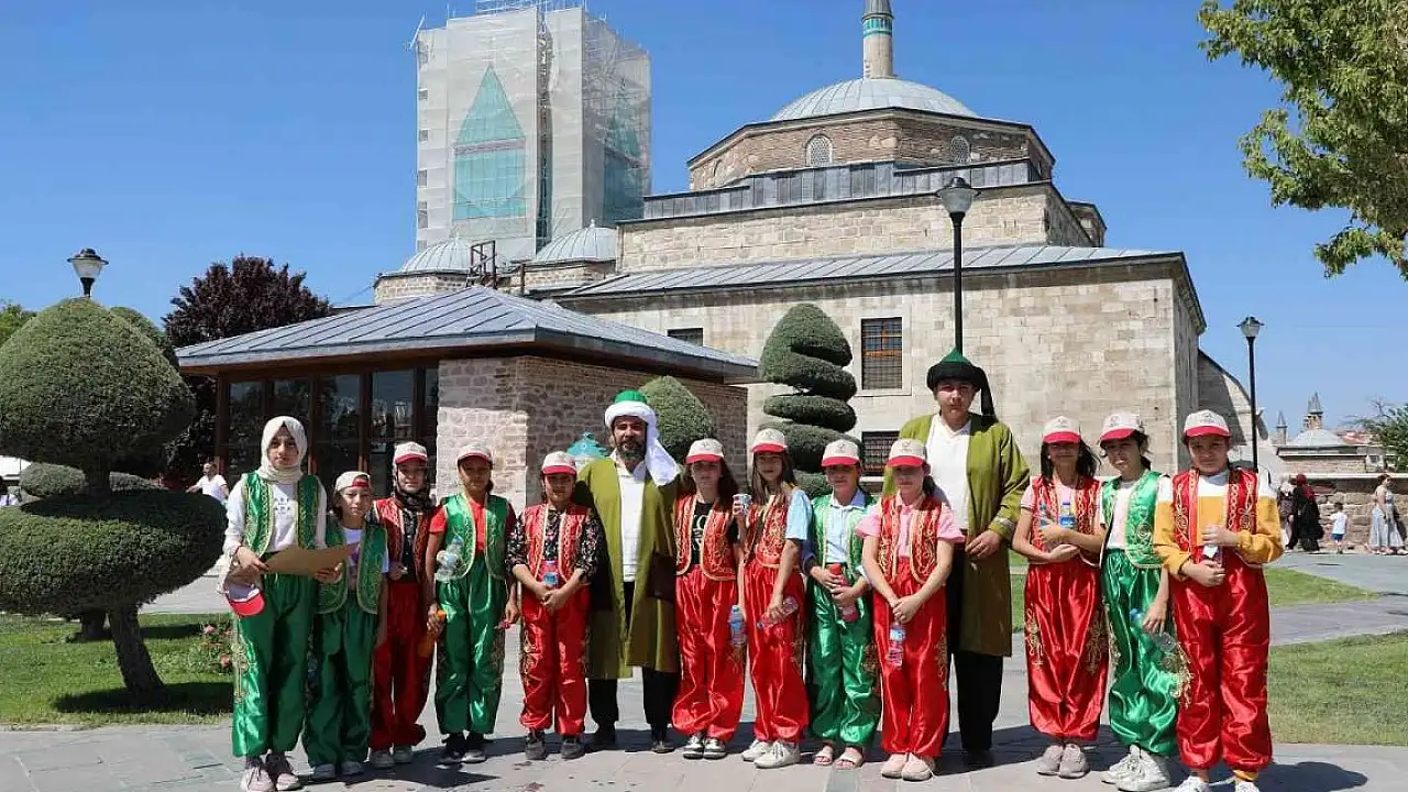 Konya Büyükşehir Belediyesi Genç KOMEK Yaz Okulu çerçevesinde 'Şehrin Kalbinde Yolculuk' projesi ile 10-12 yaş grubu öğrencileri şehir merkezinde canlı tarih turuna çıkarıyor.