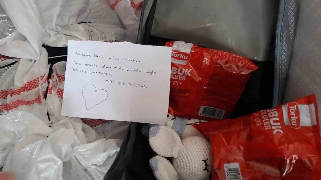 Toplanan yardım malzemeleri deprem bölgelerindeki depremzedelere ulaştırılıyor. Beyşehir'de bir erkek çocuğunun kalp figürü çizerek depremzedelere gönderdiği not, görenleri hüzünlendirdi. Anıt meydanındaki yardım toplama çadırında bulunan görevliler yardım malzemeleri arasında iliştirilen bir notla karşılaştı. Yazıyı okuyan görevlileri hüzünlendiren notta; kalp figürü ile birlikte "Merhaba benim adım Selimhan. Çok geçmiş olsun. Allah bir daha böyle bir şey yaşatmasın. Sizi çok seviyoruz" içeriği yer aldı.
