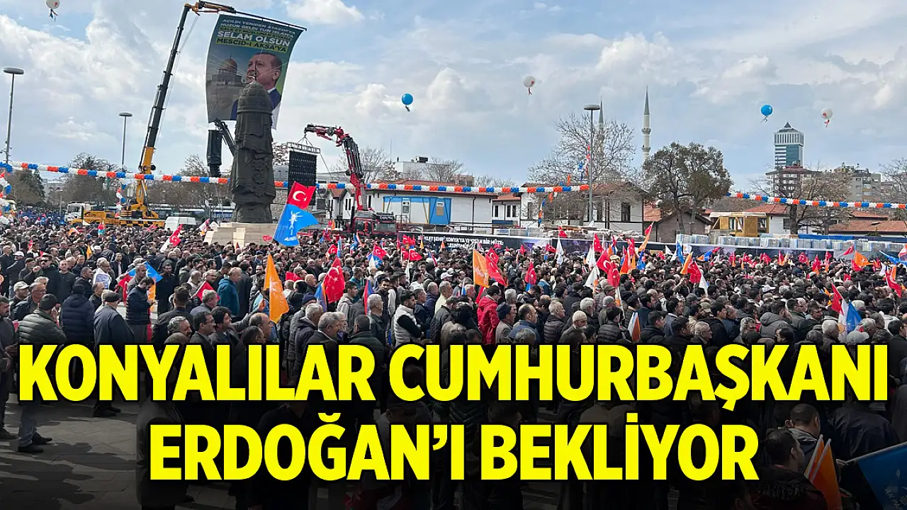 Konyalılar Kılınçarslan Meydanı'nda Cumhurbaşkanı Erdoğan'ı bekliyor.