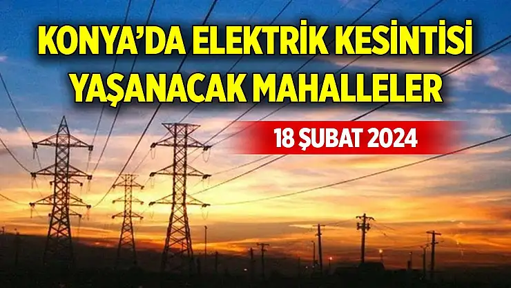 Konya'da yarın (18 Şubat 2024 Pazar) bazı mahallelerde elektrik kesintisi yaşanacak. Peki, hangi mahallelerde elektrik olmayacak? İşte detaylar…