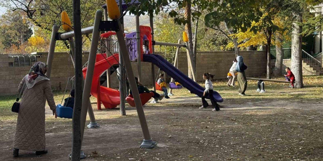 Çocukların yapraklar arasında oynadığı, gençlerin fotoğraf çektiği alanda hafta sonu tatilini fırsat bilenler yoğunluk oluşturdu.