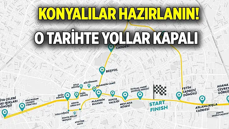 Konya, Uluslararası Konya Yarı Maratonu’na hazırlanıyor. Büyükşehir Belediyesi tarafından organize edilen maratonda binlerce sporcu ve halk koşusu olarak düzenlecek. Profesyoneller, yarı profesyoneller ve halk koşusu olarak 3 etapta yapılacak maratonda güzergah üzerindeki yollar da trafiğe kapatılacak. 26 Mayıs’ta düzenlenecek etkinlikte güzergahlar şu şekilde bulunuyor.