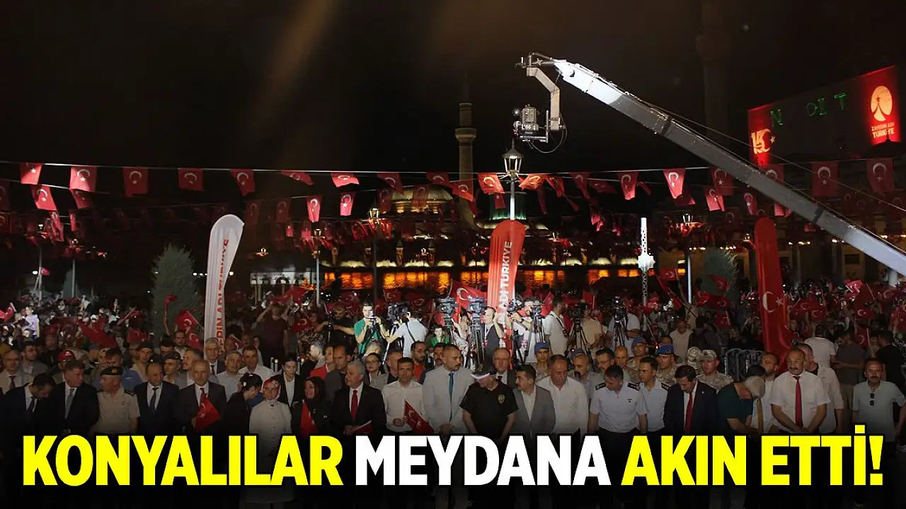 Konya’daki vatandaşlar, Türk bayraklarıyla birlikte Mevlana Meydanı’na akın ettiler. Vatandaşların yanı sıra protokol üyeleri de yer aldı.