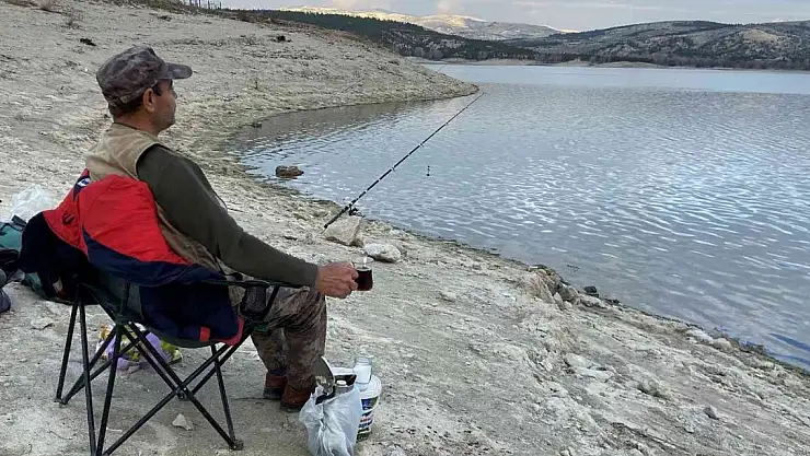Konya'da aralık ayı ortası olmasına rağmen yağış olmayan günler yaşanırken, Altınapa baraj gölünün sularına olta atıp, çay içerek stres atmak isteyenler güneşli havanın tadını çıkarıyor.
