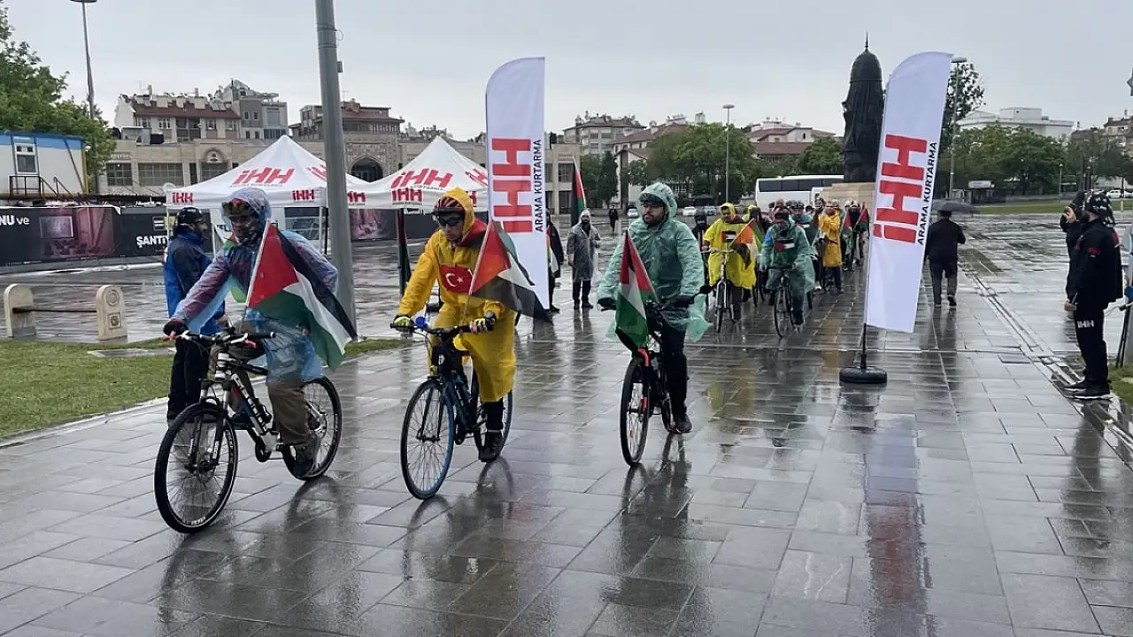 Konya'da İnsan Hak ve Hürriyetleri (İHH) İnsani Yardım Vakfı tarafından, İsrail'in Gazze'ye yönelik saldırılarını protesto etmek ve farkındalık oluşturmak için bisiklet turu düzenlendi.