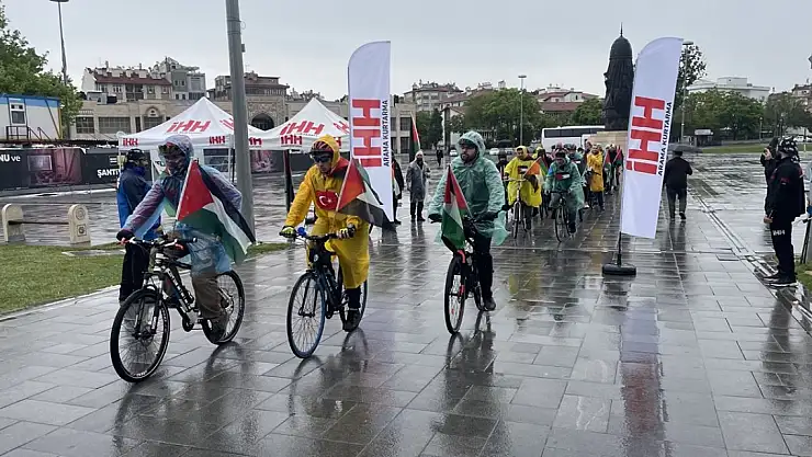 Konyalılar yağmura aldırmadı, İsrail'i protesto için pedal çevirdi