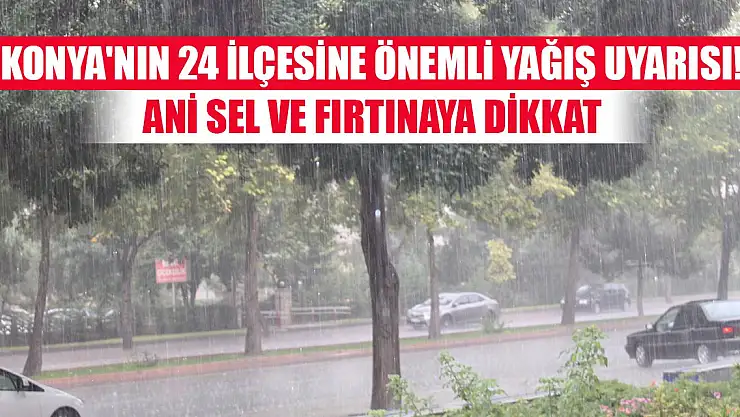 Meteorolojiden Konya'nın 24 ilçesine yarın sabah saatlerinde itibaren görülecek sağanak ve gök gürültülü sağanak için uyarı yapıldı.