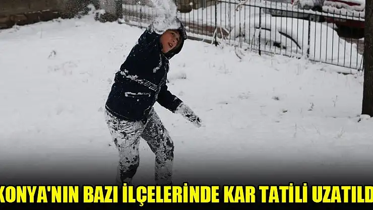 Konya'da kar yağışının ardından soğuk hava ve buzlanma etkili oluyor. Çarşamba günü Konya merkez ile birlikte bazı ilçelerde ilk ve orta dereceli okullarda eğitime 1 gün süreyle ara verilmişti. Kar tatili kaymakamlıkların kararıyla Sarayönü, Kadınhanı, Bozkır, Ilgın, Altınekin ve Doğanhisar ilçelerinde 1 gün (perşembe) daha uzatıldı.