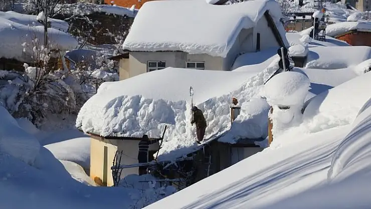 Vatandaşlar binaların çatılarında biriken kar yığınlarını temizlemek için yoğun çaba sarfediyor.