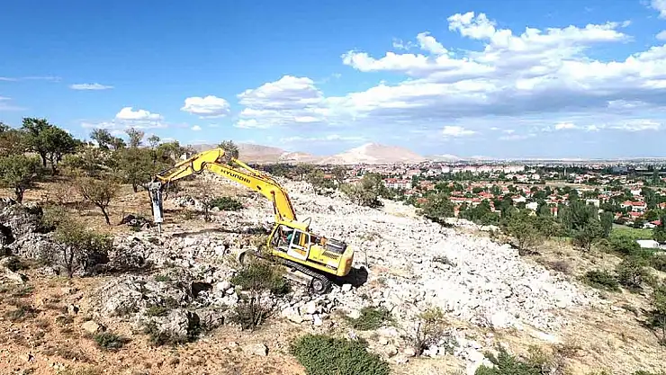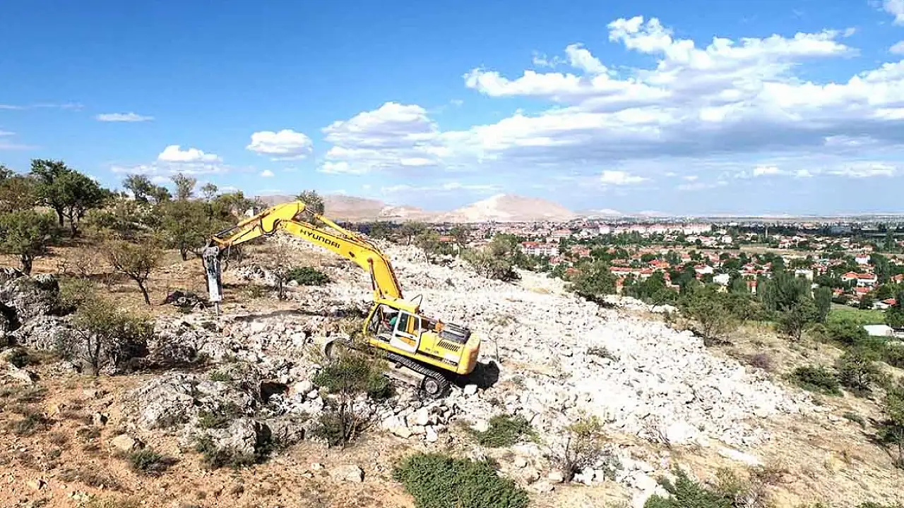 Konya Haberi... Konya'nın Ilgın ilçesinde en hakim tepelerinden biri olan Hamam Dağı eteklerinde yapımına başlanan Ilgın Millet Bahçesinin yapımı hızla devam ediyor.