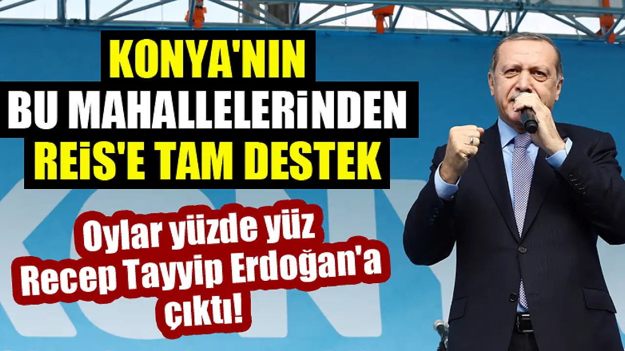 Ayrıca Konya'nın 31 ilçesinde bulunan tam 240 mahellede Cumhurbaşkanı Recep Tayyip Erdoğan'a yüzde 90'ın üzerinde oy çıktı.