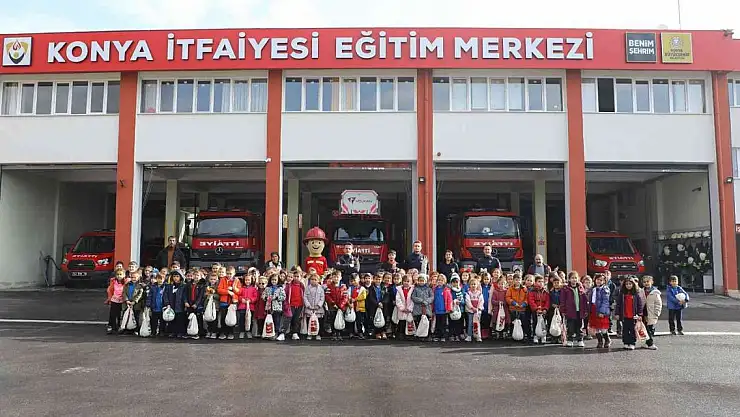 Konya Büyükşehir Belediyesi İtfaiye Eğitim Merkezi'nde düzenlenen eğitimlerde minik öğrenciler, günlük hayatta karşılaşabilecekleri yangın ve benzeri afetler konusunda bilinç kazanırken, sevdikleri itfaiyecilerle vakit geçirmenin mutluluğunu yaşıyor. 3 seans olarak yapılan etkinliklerle her bir seansta 88 öğrenci Konya İtfaiye Eğitim Merkezi'nde ağırlanıyor.