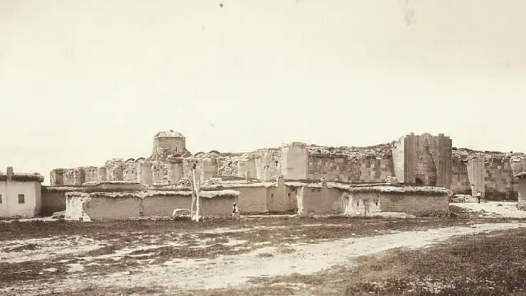 Selçuklu dönemine ait olan ve tarihi dokusuyla dikkat çeken Sultanhanı Kervansarayı’nın yanı sıra, etrafındaki kerpiç evlerin de yer aldığı bu fotoğraf, ünlü fotoğrafçı G. Berggren tarafından çekildi. Berggren’in objektifinden yansıyan bu kare, Konya’nın kültürel mirasına dair önemli ipuçları sunuyor.