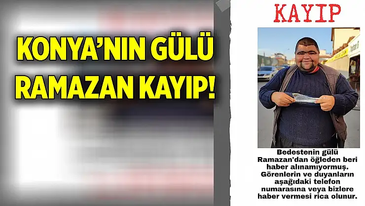 Konya’da Kapu camii civarlarında dolaşan ve özellikle çarşı esnafı tarafından yakından tanınan Ramazan isimli zihinsel engelli vatandaşın kayıp duyurusu yapıldı. Yapılan duyuruda, “Bedesten’in gülü Ramazan’dan öğleden beri haber alınamıyormuş. Görenlerin ve duyanların 0534 214 60 38 isimli telefona veya yetkililere müracaat etmeleri rica olunur” denildi.
