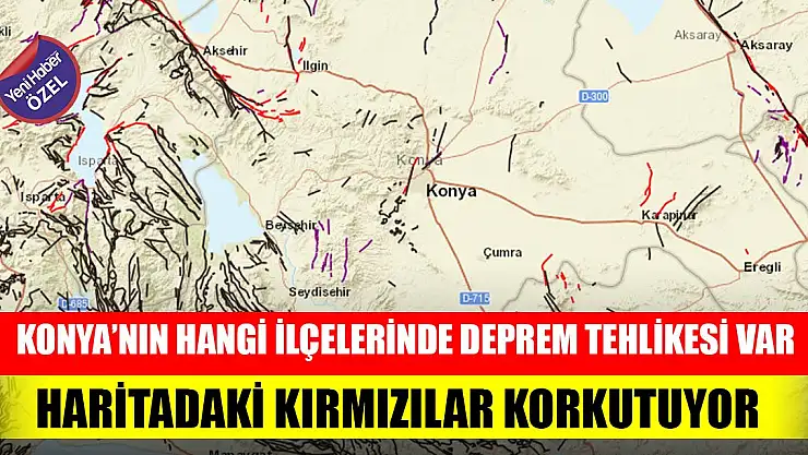 HARİTADA KONYA’DA BİRÇOK YERDE DİRİ FAY GÖRÜNÜYOR