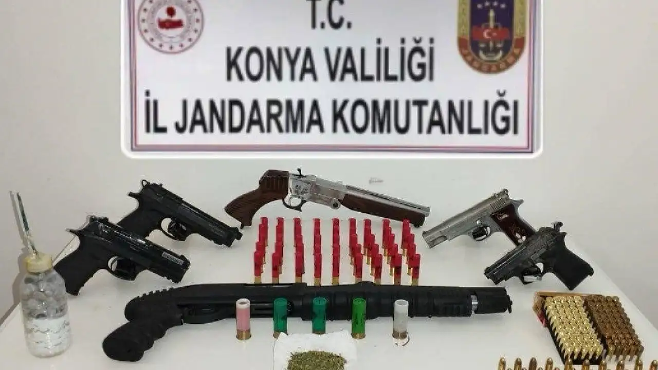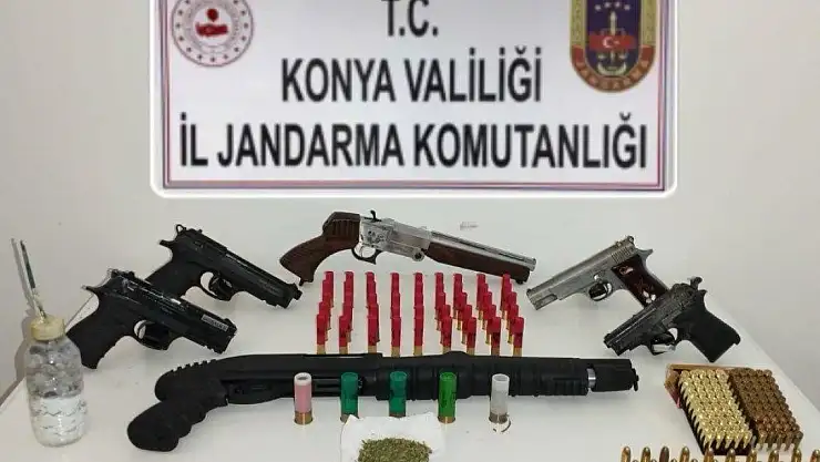Konya'nın Beyşehir ve Çumra ilçelerinde jandarma ekiplerinin yaptığı çalışmalarda ruhsatsız av tüfeği, av tüfeğine ait şarjör, tabanca ve tabancalara ait şarjör ele geçirilirken, 1 şüpheli gözaltına alındı.