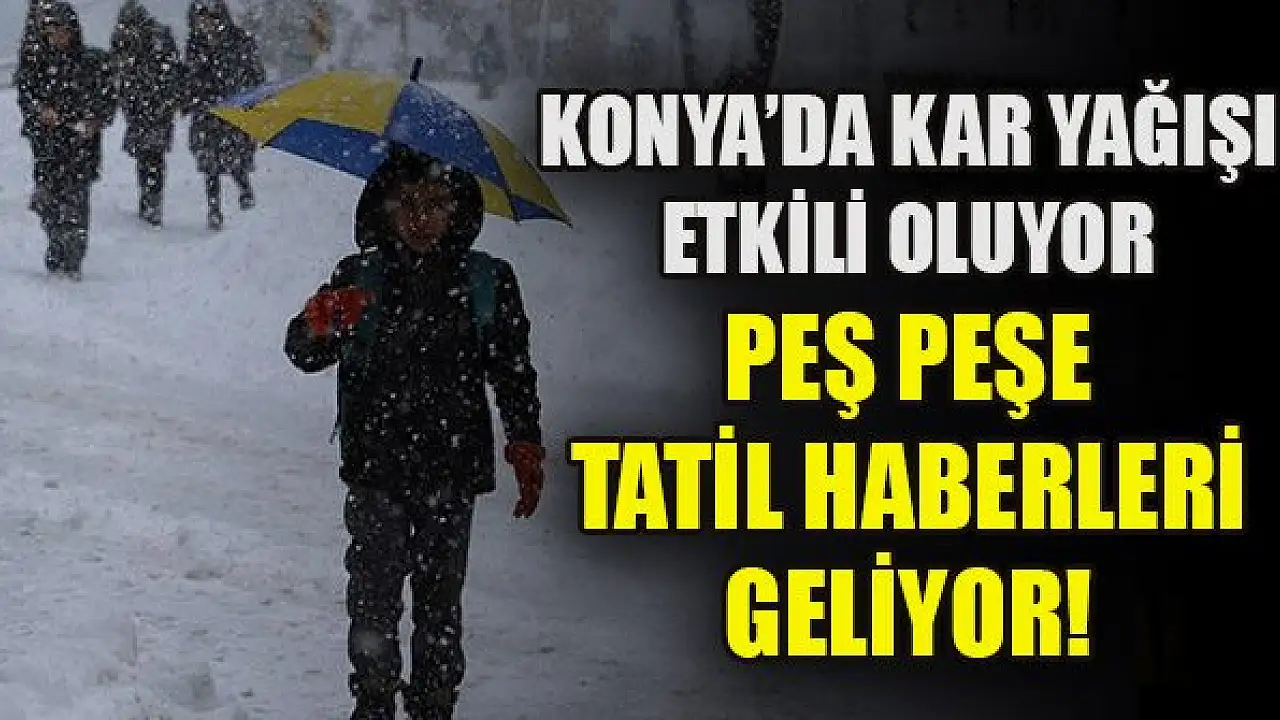 Konya ilçelerinde kar yağışı etkili olurken tatil haberleri gelmeye devam ediyor. Üç ilçede daha eğitime kar engeli geldi.