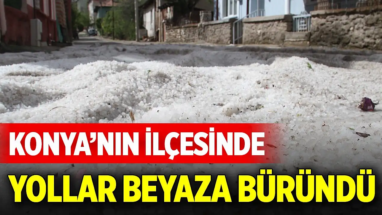 Konya'da ilçesi doluya teslim oldu, dolu tanelerinin oluşturduğu yığınlar gece saatlerinde yolları ve açık alanları kaplayıp beyaza bürünmesine yol açtı.