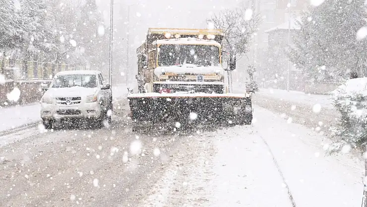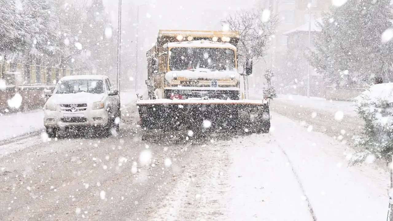 Konya'nın ilçesinde yoğun kar yağışı! Kar küreme ve solüsyon çalışmaları sürüyor