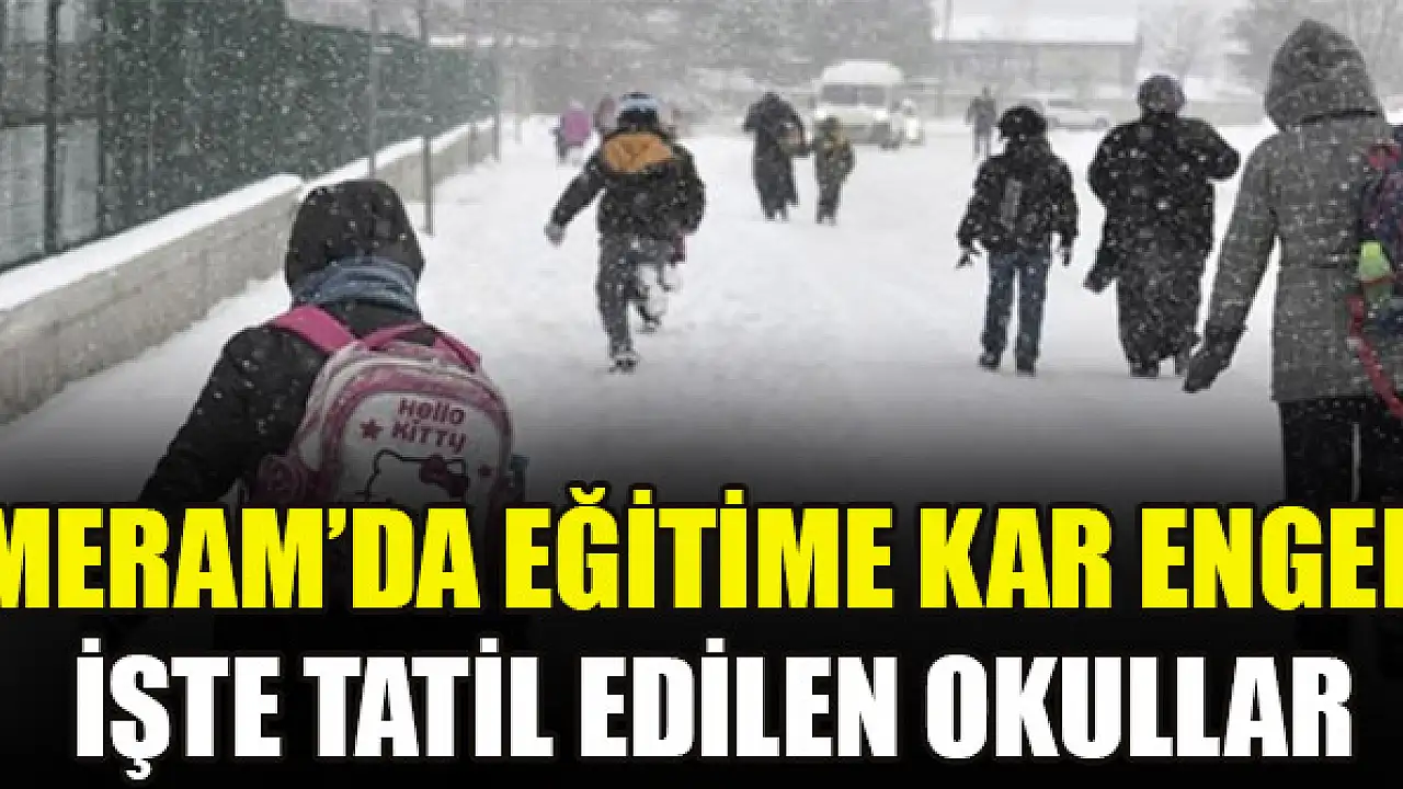 Konya Milli Eğitim Müdürlüğü'ndne yapılan açıklamada; "Meram ilçemizde, kar yağışının yoğun devam etmesi, buzlanma ve tipi nedeniyle ulaşımda yaşanabilecek sıkıntıların önüne geçmek ve meydana gelebilecek risk ve olumsuzluklara karşı, önleyici tedbir olarak, aşağıda ismi geçen okullar ve buraya öğrencisi taşınan yerleşim yerlerinde 3 MART 2022 Persembe günü yüz yüze eğitime 1 gün ara verilmiştir. Bu süre zarfında uzaktan eğitim yapılacaktır.