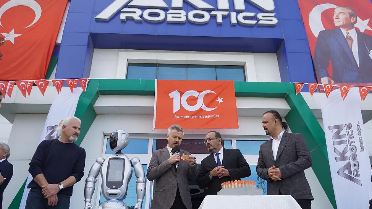 Cumhuriyet’in 100. yılı kutlama töreni, AKINROBOTICS İnsansı Robot Fabrikasında gerçekleştirildi. Kurulduğu günden bu yana bilim ve yüksek teknoloji yolunda, bilime ve insanlığa hizmet amacıyla çalışmalarını sürdüren Türkiye’nin yerli robotik markası AKINROBOTICS, yaptığı çalışmalarla ülkemizde ve uluslararası kamuoyunda adından sıkça söz ettiriyor. AKINSOFT ve AKINROBOTICS Yönetim Kurulu Başkanı Dr. Özgür Akın, AKINROBOTICS’in ADA Serisi robotlarının son ve en yeni versiyonunu Sosyal Robot ADA-7’yi, Üretim Koordinatörleri Emre Çağ ve Süleyman Demir ile birlikte tanıttı. Akın, “ADA-7, gelişmiş yapay zekâ teknolojisine, yüz algılama, duygu, yaş ve cinsiyet analizi yeteneklerine, üstün hareket kabiliyeti ve iskelet takibi gibi pek çok özelliğe sahip” dedi. Tören, fabrikayı ve yapılan çalışmaları yerinde gözlemleme fırsatı bulan davetliler ile birlikte toplu fotoğraf çekimi ile sona erdi.
