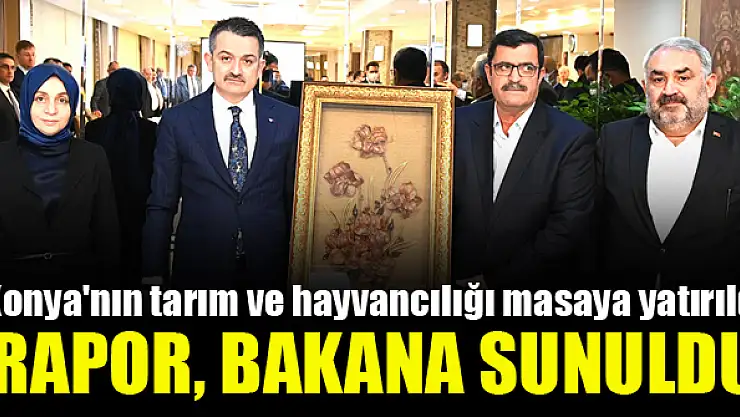 Konya tarım ve hayvancılığı ile sulama alanında yapılan yatırımlar, Tarım ve Orman Bakanlığı'nda yapılan toplantıda ele alındı. AK Parti Genel Başkan Yardımcısı Leyla Şahin Usta başkanlığında oluşan heyet, Konya tarımıyla ilgili hazırlanan sorunlar ve çözüm önerileri raporunu, Tarım ve Orman Bakanı Bekir Pakdemirli'ye iletti.
