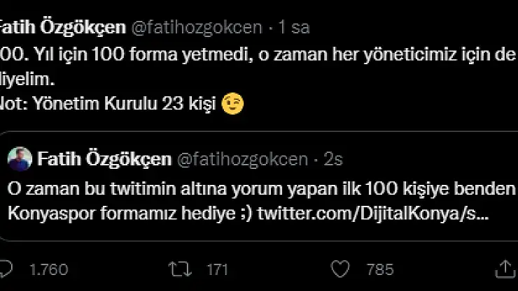 Konyaspor Kulübü Başkanı Fatih Özgökçen'den sosyal medyadan yaptığı forma duyurusuna rekor katılım oldu