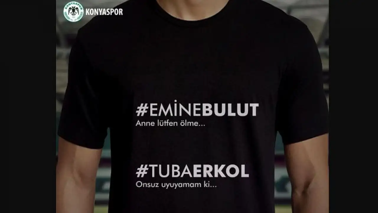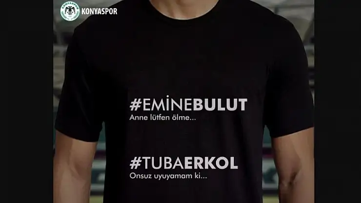 Konyaspor, kadın cinayetlerine dikkat çekmek ve şiddete karşı toplumsal hassasiyeti güçlendirmek için Süper Lig'in 2. haftasında 25 Ağustos Pazar günü deplasmanda Galatasaray ile oynayacağı maçın ısınma bölümüne Emine Bulut ve Tuba Erkol'un isimlerinin yazılı olduğu siyah tişörtlerle çıkacak.