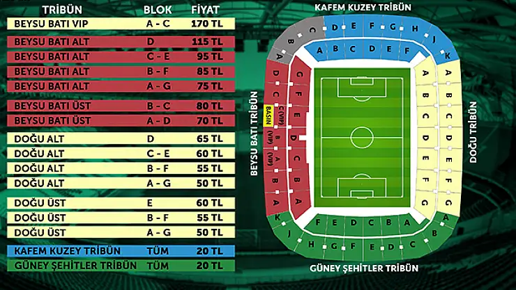 Konyaspor’un, Kasımpaşa ile arasında oynanacak maçın bilet fiyatları 20 TL ila 170 TL arasında değişiyor.