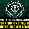 Konyaspor Kulübü kişilerin siyasi geleceğini şekillendirme yeri değildir. Konyaspor üzerinden herhangi bir konu özelinde nemalanmak isteyen hiç kimseye fırsat verilmeyecektir. Kulübümüzün hakları sonuna kadar savunulacak, korunacaktır. Böylesi tartışmalarla kulübümüzün, yönetimimizin ve camiamızın enerjisini, vaktini ve heyecanını asıl mecrasının dışına çıkararak eksiltmeye çalışanlara hak ettikleri cevaplar her platformda layıkıyla verilecektir.