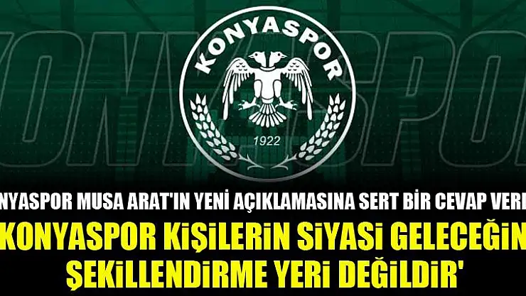 Musa Arat sosyal medya hesabında yaptığı açıklamanın son bölümünde “Konyaspor siyaset üstü bir değerimizdir. Hem kulüp yönetimi hem de siyasetçiler Konyaspor’u siyasi çekişmelere alet etmemelidir” diyerek açıklamamızda siyasetle ilgili unsurlara yer verdiğimizi ve yahut bu minvalde imalarda bulunduğumuzu ifade etmektedir.
