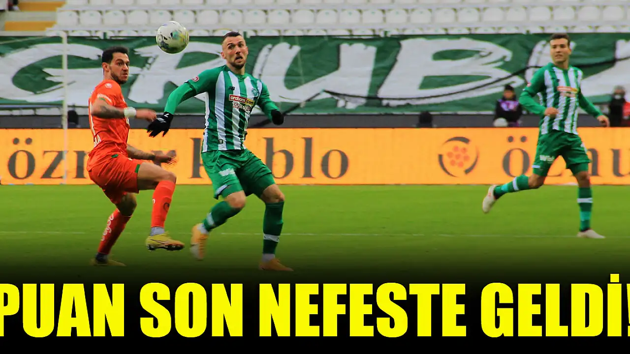 Konyaspor, Süper Lig'in 15. haftasında sahasında karşılaştığı Alanyaspor ile 2-2 berabere kaldı. Amir Hadziahmetovic'in 22. dakikada penaltıdan attığı golle 1-0 öne geçen yeşil beyazlılar, Alanyaspor'da Furkan'ın 65. dakikada, Ahmet Hassan'ın da 78. dakikada penaltıdan attığı gollerle 2-1 geriye düştü. Yeşil beyazlılarda Amir, 90+10. dakikada kazanılan penaltıyı bir kez daha gole çevirerek skoru 2-2'ye getirdi ve maç berabere sona erdi.