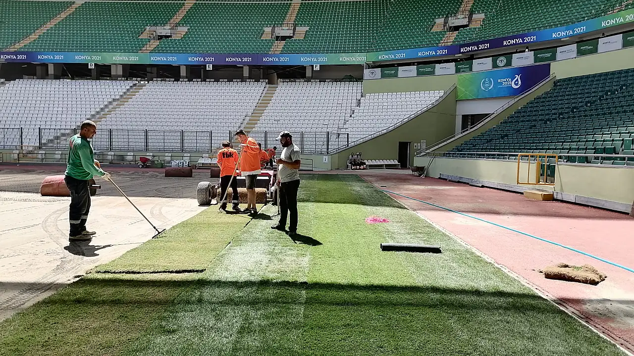 Konya'da bu yıl düzenlenen 5.İslami Dayanışma Oyunları'nın açılış töreninde zarar gören çimlerin değiştirilmesi kararın ardından Konya Büyükşehir Belediyesi MEDAŞ Stadyumu'nun zemininin yenileme çalışmalarında sona gelindi.