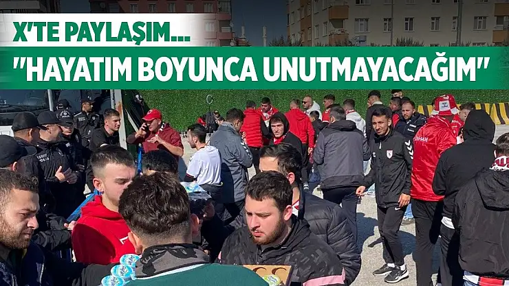 Konyaspor-Samsunspor maçının yankıları sürüyor. Ligde dostane görüntü veren iki takım taraftarlarının maç öncesi görüntüleri ortaya çıktı. Yeşil beyazlılar, Konya'nın meşhur yiyeceği etliekmekle rakip taraftarları stadyum çevresinde karşıladı. Samsunlu bir taraftar yaşadığı sevinci sosyal medyadan paylaştı. Akın Biçer, "Açlıktan bayılmak üzereyken geldi yemek. Konyaspor taraftarına teşekkür ederim yediğim bu yemeği asla unutmayacağım" dedi. Maç sonu da taraftar grupları karşılıklı tezahürat yaptı.