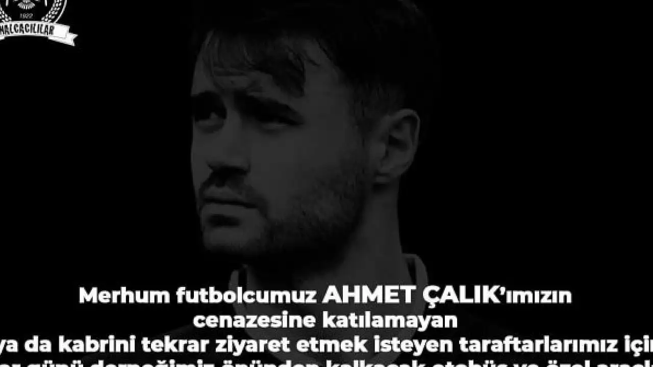 Nalçacılılar'dan yapılan açıklamada, "Merhum futbolcumuz Ahmet Çalık'ımızın cenazesine katılamayan ya da kabrini tekrar ziyaret etmek isteyen taraftarlarımız için Pazar günü derneğimiz önünden kalkacak otobüs ve özel araçlarla Ankara'ya hareket edilecektir. Katılmak isteyen taraftarlarımızı Pazar sabah saat 08:30'da Nalçacı'daki derneğimize bekliyoruz" ifadelerine yer verildi.